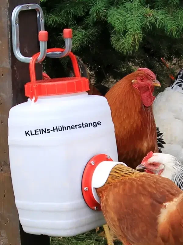 Der Futterspender sorgt für eine kontrollierte Futteraufnahme, reduziert Futterkosten und hält den Stall hygienisch sauber. Ideal für Hobbyhalter ebenso wie für größere Hühnergruppen.