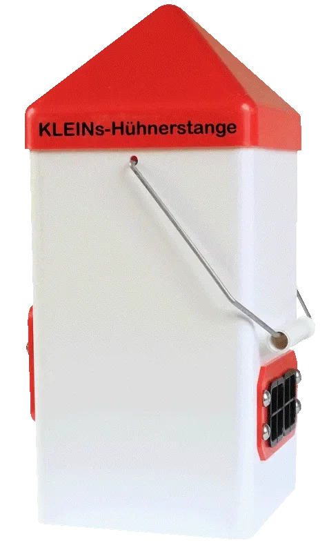 Öffnung Küken mit je 35 x 35 mm (B x H) und Öffnung Junghenne mit je 45 x 51 mm (B x H); Außenmaße Spender ca. 140 x 140 x 320 mm (B x T x H)