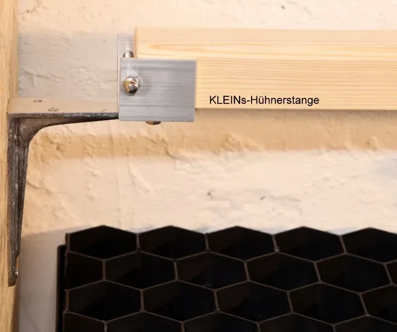 Mit dieser praktischen und stabilen Halterung aus Aluminium lassen sich Hühnersitzstangen schnell montieren und ebenso einfach wieder herausnehmen. Perfekt für eine schnelle Reinigung des Hühnerstalls und eine flexible Nutzung.