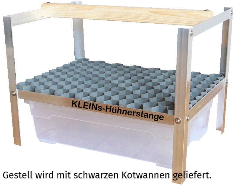Die transparenten Kotwannen auf der Abbildung 1 führen wir nicht mehr. Das Gestell wird mit schwarzen Wannen ca. 50x60cm geliefert, siehe Abbildung 2.