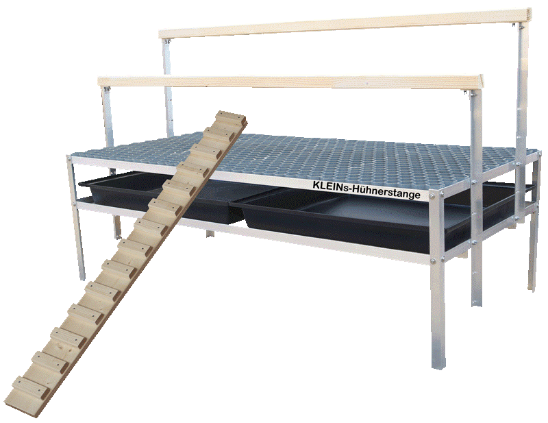 Optional kann zu diesem Alu-Gestell unsere Hühnerleiter gewählt werden.