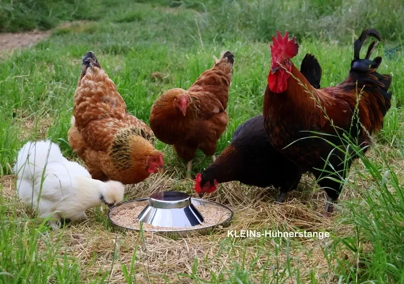 Futterspender für Hühner, Jungtiere und Küken – flexibel zum Aufstellen oder Aufhängen.